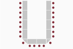 Tische in U-Form angeordnet, Teilnehmer sitzen außen – optimal für Workshops, Diskussionen oder Schulungen.